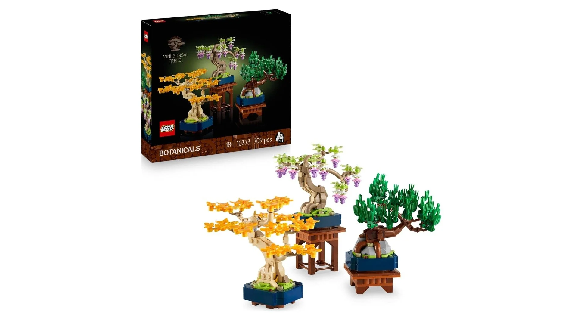 Il set Mini Bonsai offre un rilassante progetto di costruzione con 709 pezzi per creare tre diversi mini alberi bonsai: ginkgo, pino nero e glicine. Tutti gli alberi hanno fogliame intercambiabile e sono completi di eleganti supporti, rendendoli perfetti per personalizzare e decorare qualsiasi spazio con un tocco zen.